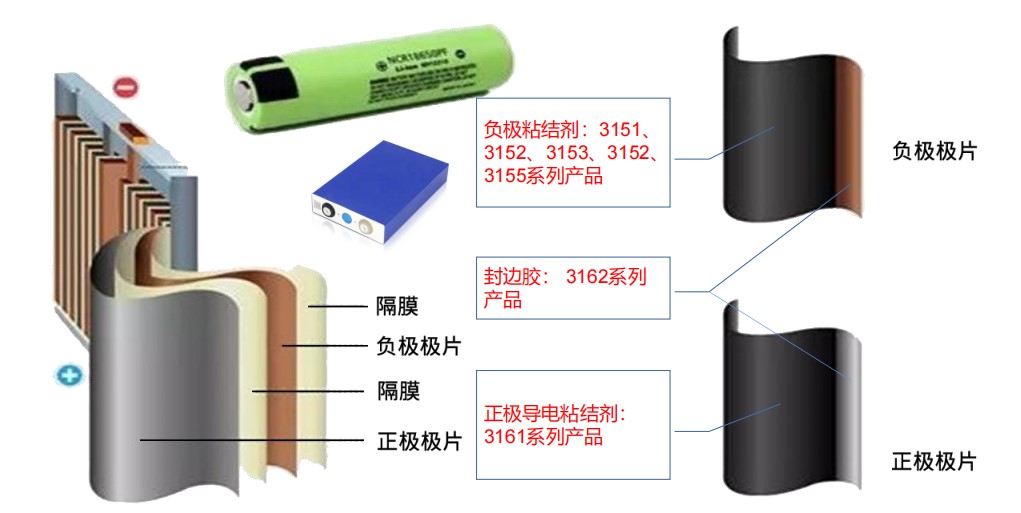 負(fù)極材料作為鋰電池四大關(guān)鍵材料之一,決定著鋰電池充放電效率、循環(huán)壽命等。由于正負(fù)極材料都是無(wú)機(jī)粉末,因此在形成電池正負(fù)極極片的過(guò)程中需要高分子粘結(jié)劑將兩者牢固地粘接在金屬集流體上。