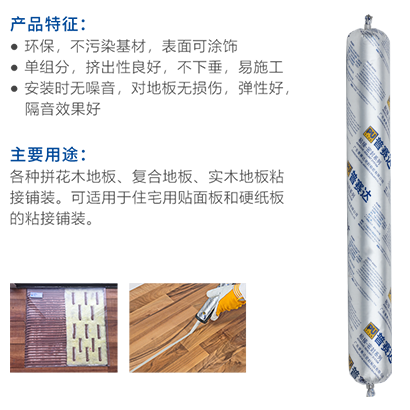 各種拼花木地板、復(fù)合地板、實(shí)木地板粘接鋪裝。可適用于住宅用貼面板和硬紙板的粘接鋪裝。