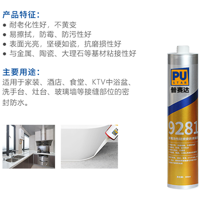 適用于家裝、酒店、食堂、KTV 中浴盆、洗手臺、灶臺、玻璃墻等接縫部位的密封防水。