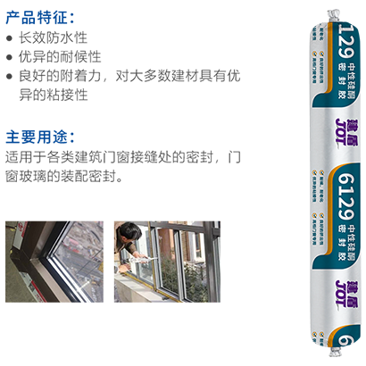 6129為單組分濕氣固化密封膠,采用中性硅酮膠作為原料, 對(duì)環(huán)境無污染,與金屬、陶瓷、玻璃、石材等多種基材具有良好的密封粘接性能。